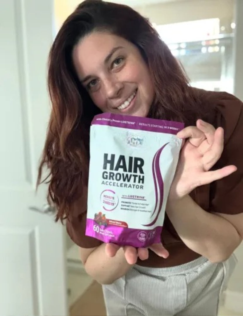 "After just a month, I can see new baby hairs around my hairline and my ponytail feels thicker. I love that it’s gentle on my stomach too!"
