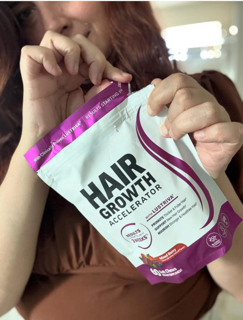 Delicious, easy-to-digest chews formulated for women on GLP-1s—promoting thicker, stronger hair with gentle, daily nourishment.